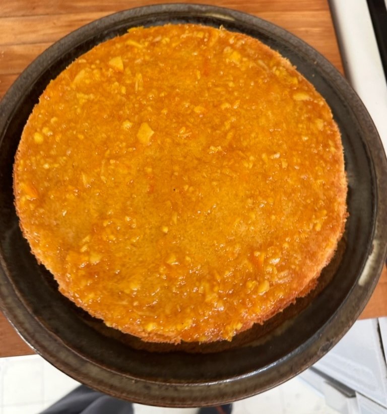 The orange glaze on the top is much like marmalade. It makes a sticky coating that enhances the crumb and flavor of the cake perfectly.