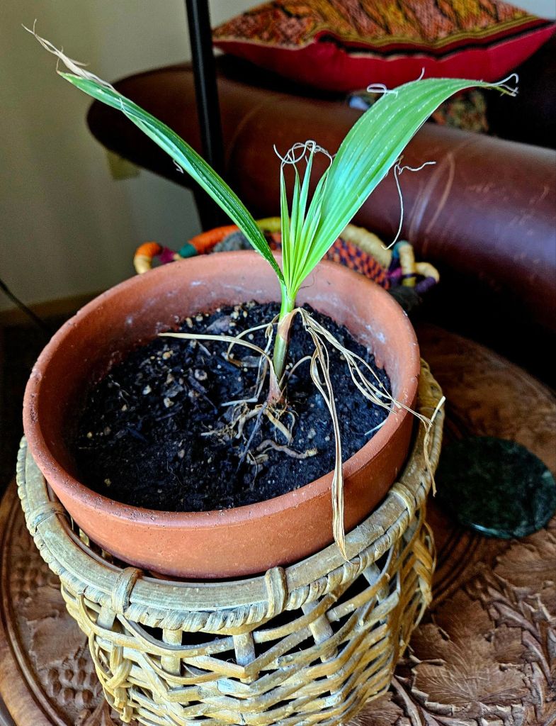 I don’t know why but I wanted to see if I could grow a palm tree from Arizona. So right before I left from my last visit with Tracy and Kelly, Kelly dug up this little sprout from their front yard. I put it in a plastic bag with the tiny root wrapped in a wet paper towel and carried it home in my purse.