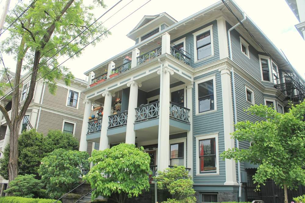 Our yellow house was built with four apartments. The front was built at street level on a steep hill leading towards downtown to the East, and to the North, the land was even steeper giving each apartment spectacular views of the city.