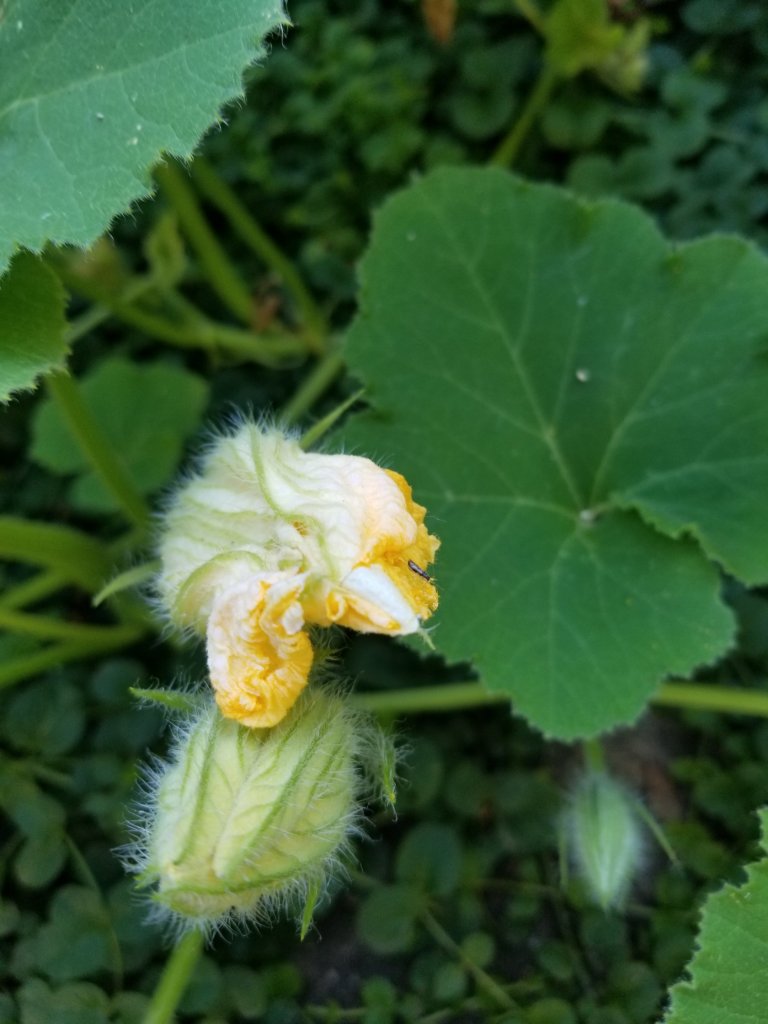 He watched as other bees entered a particularly attractive squash blossom. Once the unsuspecting bee got deep within, this guy… (I don’t know if it was a guy or not, but I suspected as much, as his seeming thuggery led me to believe so) followed him or her in from behind.